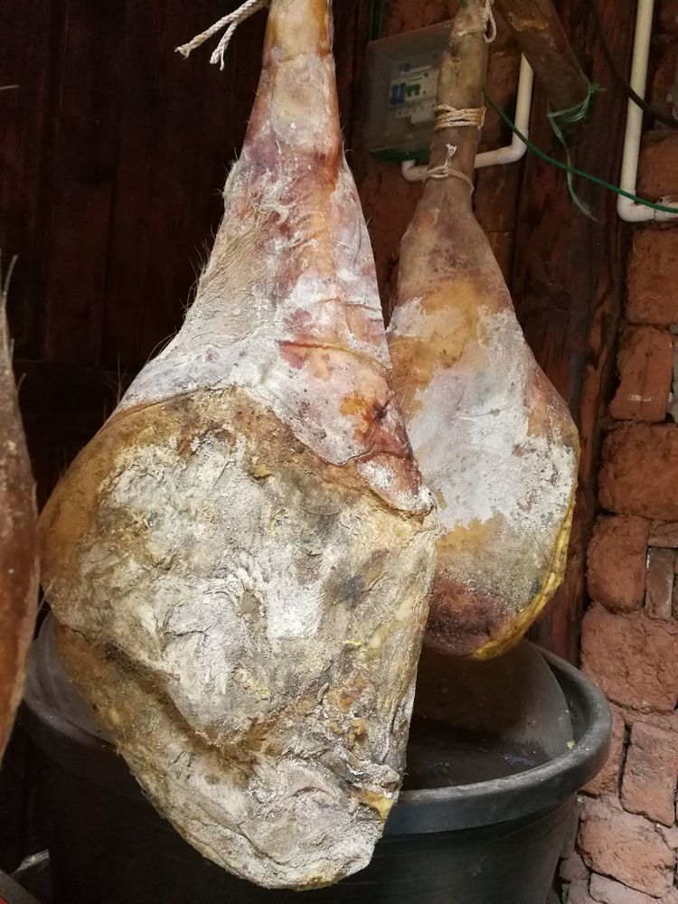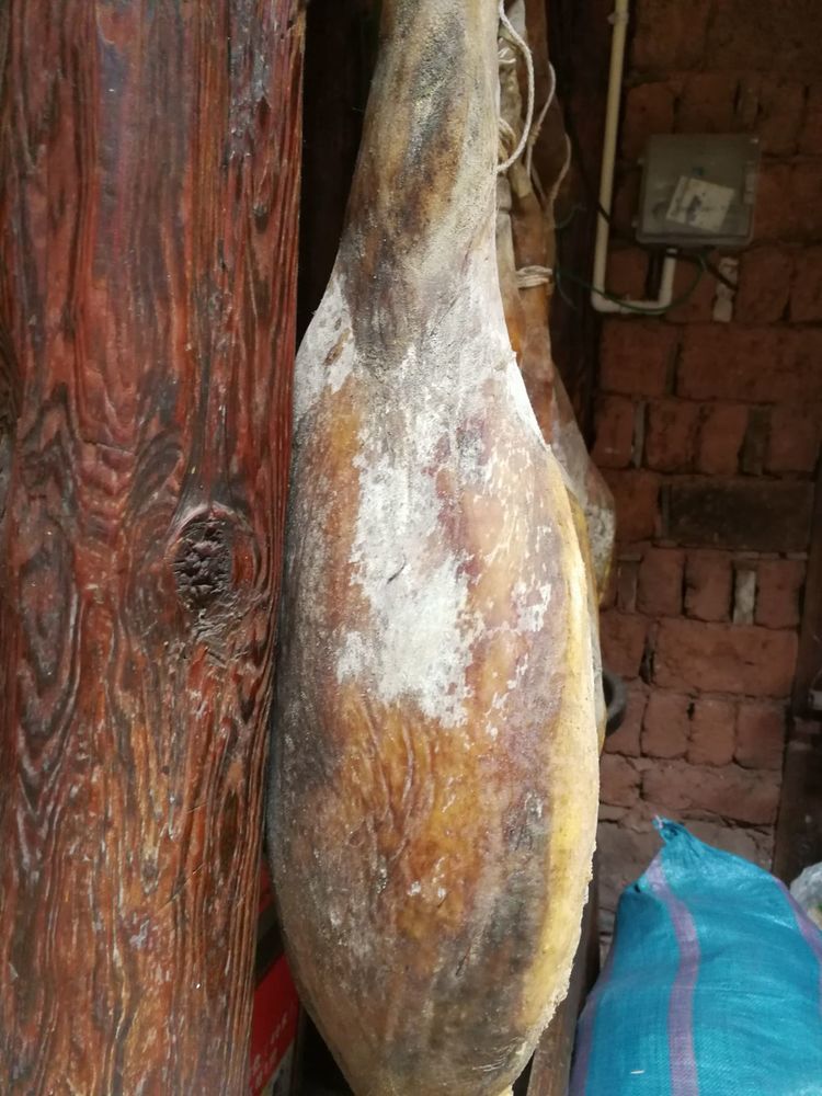 据说火腿的白毛越多火腿越贵,反正也没打算买,也就没有问价钱,也找不见人问