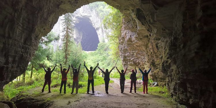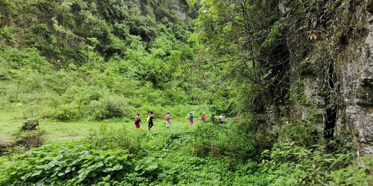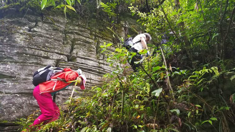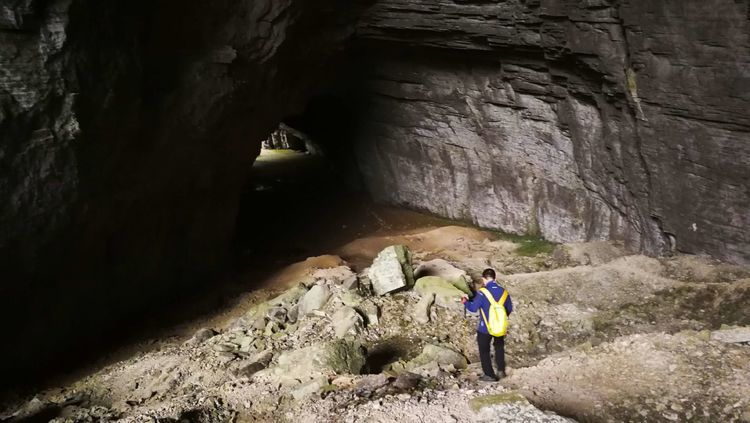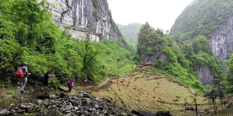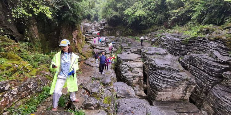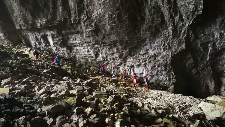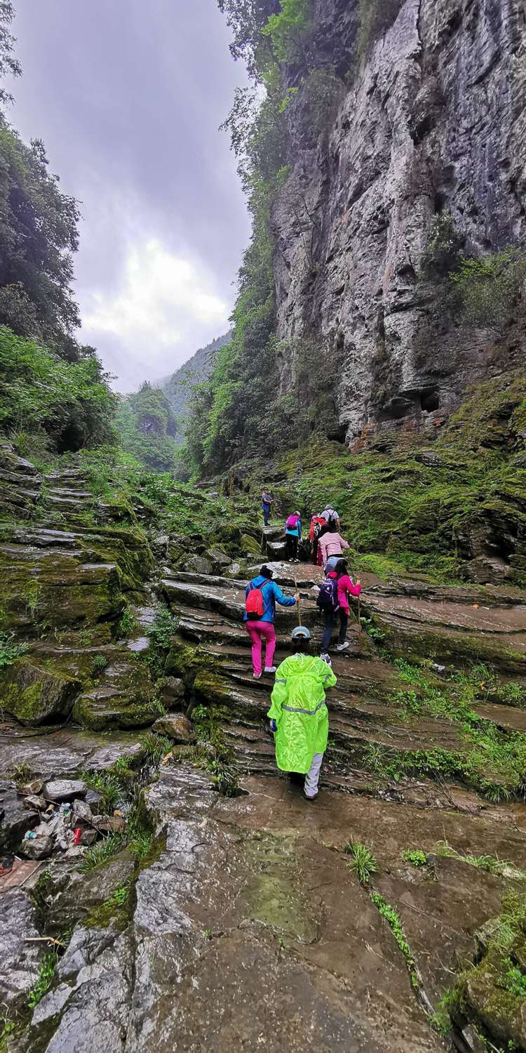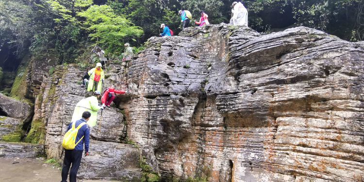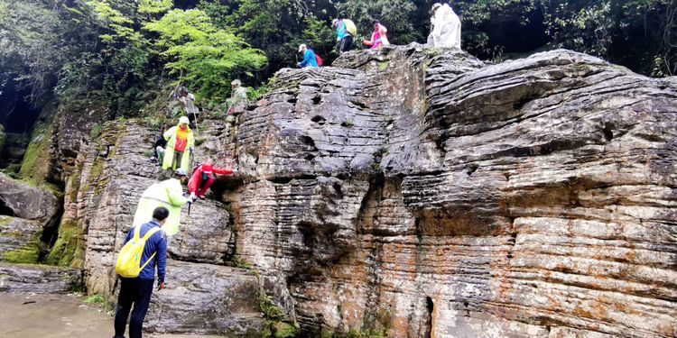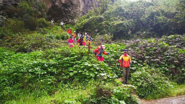 加上今天下起小雨,石头上滑溜溜的,难度可想而知,十二哥心理压力还是很大的,一直在队伍后面断后,可是队伍前面又不知道怎样走也需要引路,虽然就是沿着一个古老的河床前行,方向错不了,但是暗河洞穴随处都有,真要掉进洞穴,想要救援都没有办法,队伍里的人员也仅仅限于能够自保,救援只能等专业人员了。所以十二哥又要顾前又要顾后,大家走的战战兢兢。