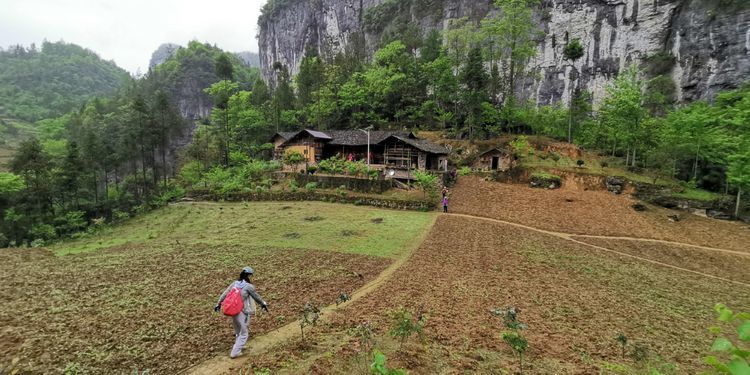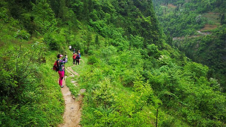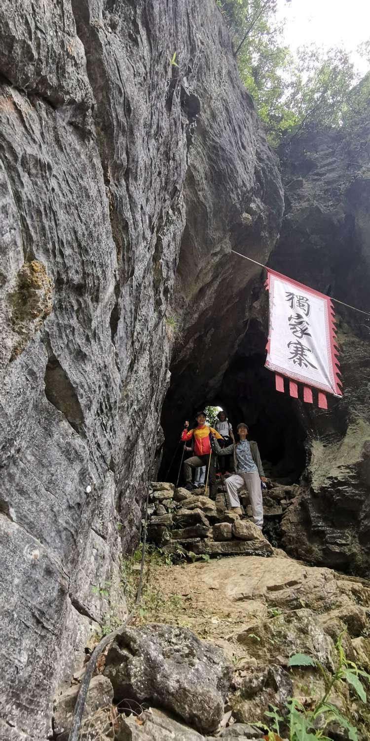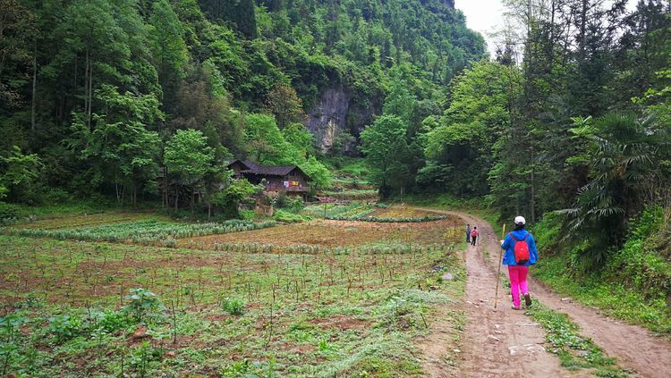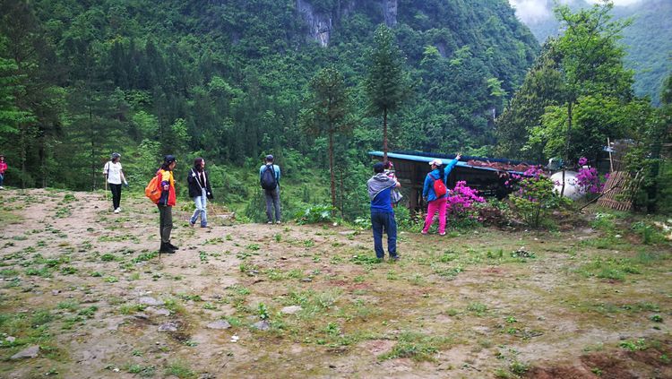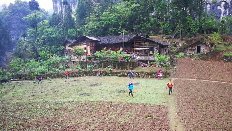 我们路线会经过一户人家,被称为独家寨,听名字就知道这里就这一户人家,一个高龄的老爷子,十二哥每次带队都会特地到他家转一下,队员手里有零钱的给些,不是救济就算是慰问吧,这里真的就像世外桃源一般,陶渊明的《桃花源记》中说“林尽水源,便得一山,山有小口,仿佛若有光。便舍船,从口入。初极狭,才通人。复行数十步,豁然开朗。土地平旷,屋舍俨然,有良田美池桑竹之属”描述的与这里一般。