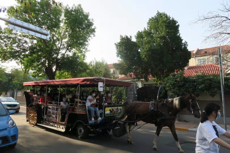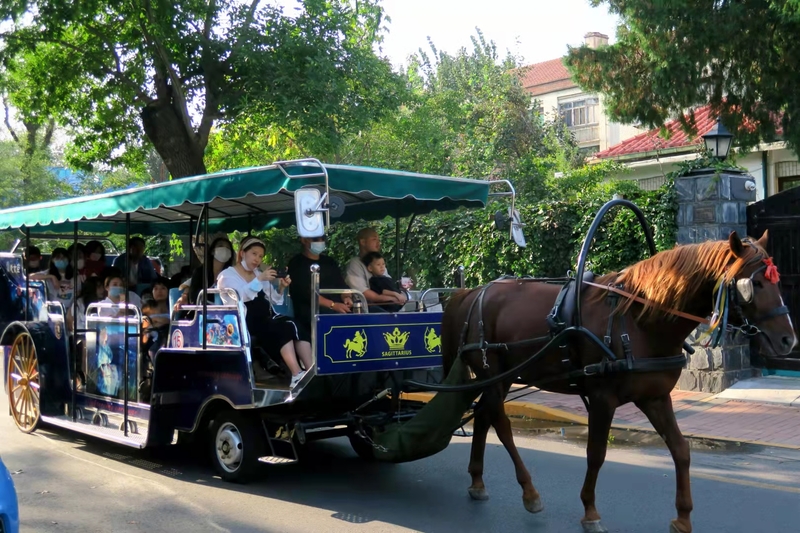 哦,对了,乘坐老式马车游览五大道是充其量就是个娱乐,80元银子,20分钟不允许下车的游览,除了马车上解说员那点一会就会忘到爪哇岛的陈词,空空如也。还好,就是走路不打怵,下了马车哥哥再去走一圈。