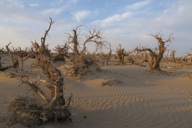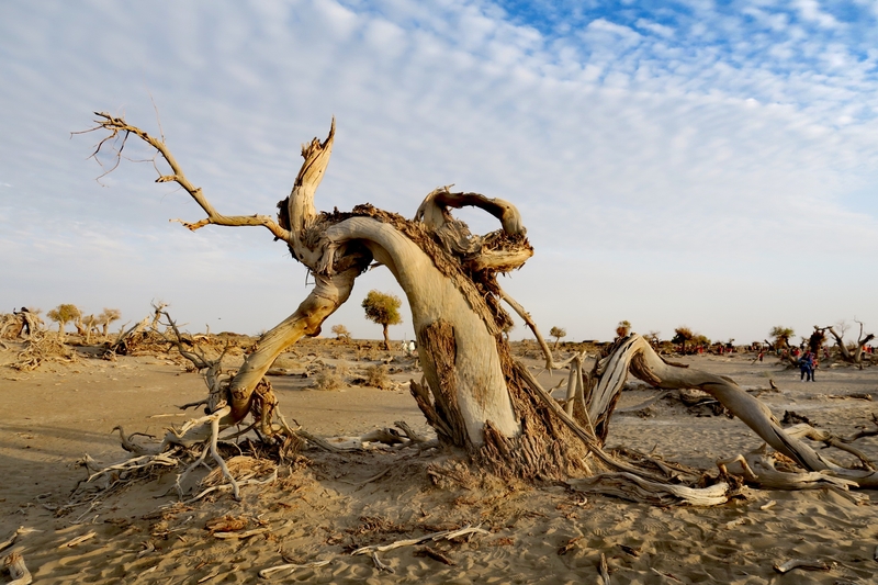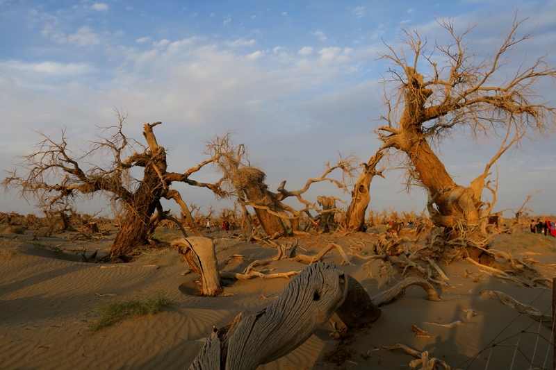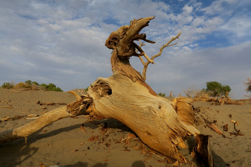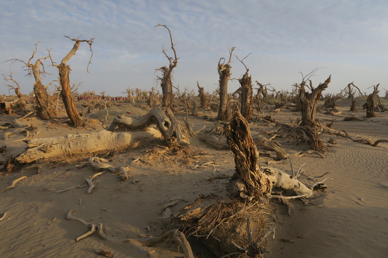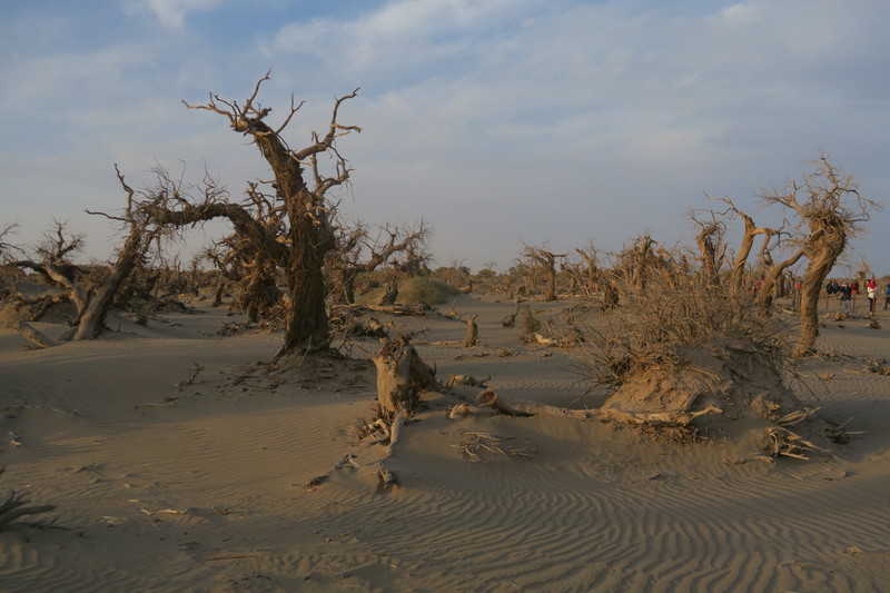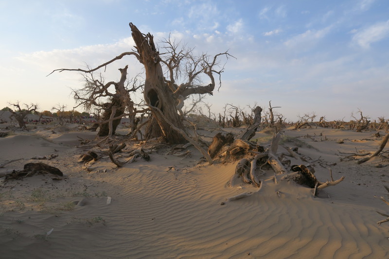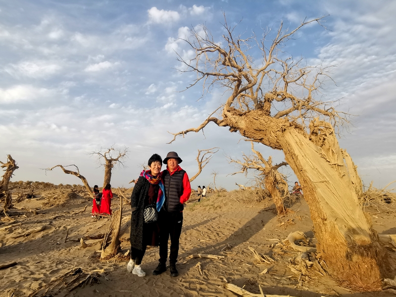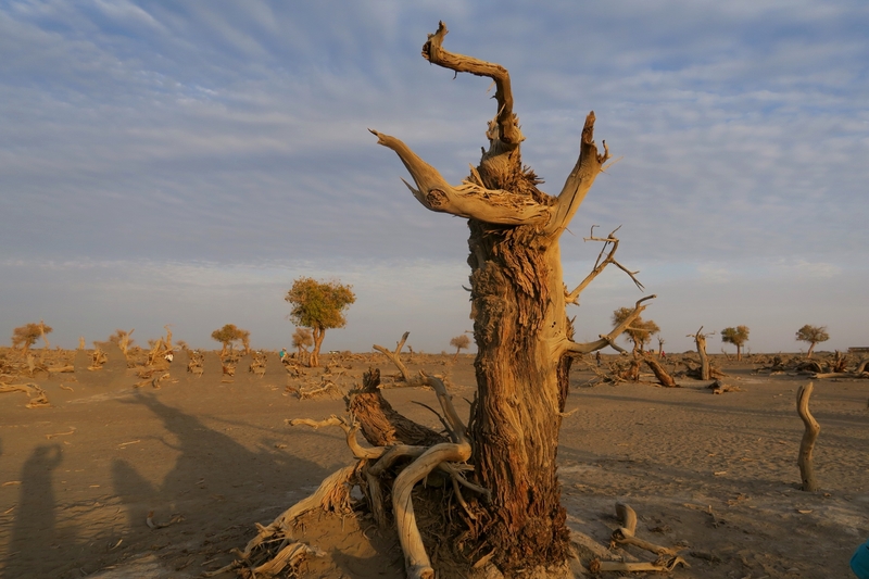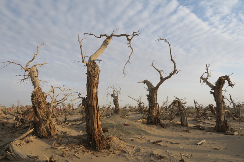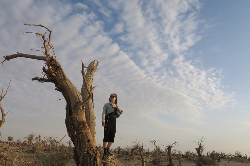 你们还在上班的路上,我们已游览结束,途中仰拜3000多年的胡杨神树后,又踏上了戈壁的漫漫长途。七百多公里,G7高速的两边,几无村庄,人影不见,偶见骆驼寻食于少的可怜的骆驼蓬草~~~