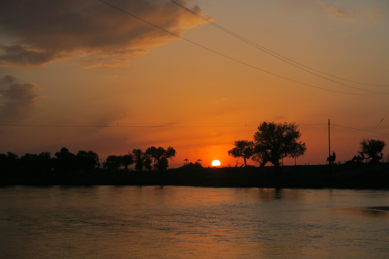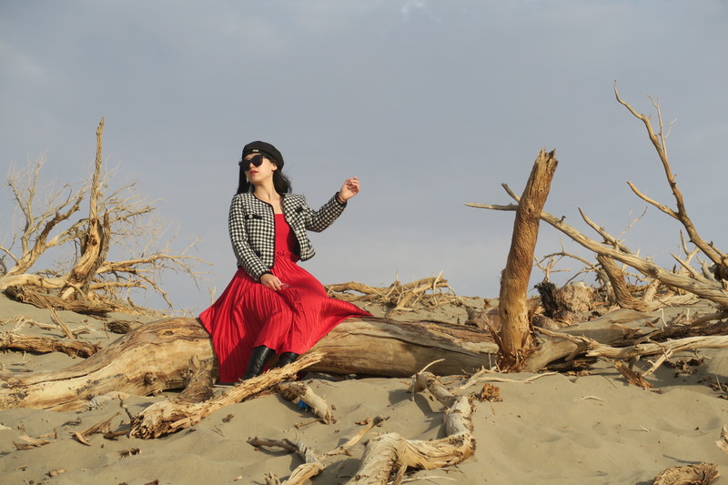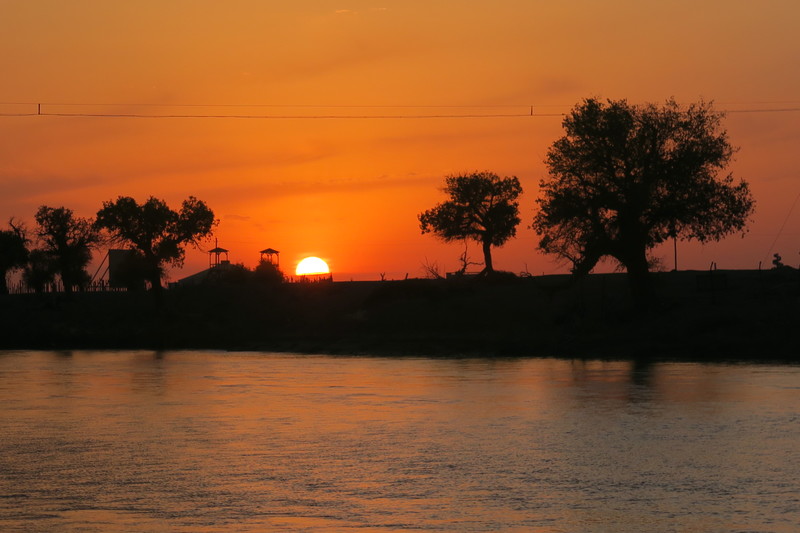 “啊——”众多人的呼喊,你就知道太阳如约而出。对着刚刚跳出大地的红日欢呼雀跃、手舞足蹈!拍照、拍照!双手冻的从衣服兜里反复掏出伸进去。一轮红日冉冉东升,半天染红。居延海里,热血沸腾。