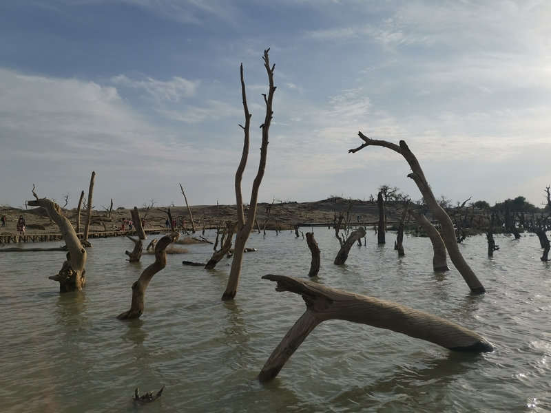 那时候的居延海,沙海茫茫,寸草不见,荒凉一片,中央高度重视,统一调配,千里引水。如今通过黑河调水工程,居延海水草丰沛,湿地生态维护系统趋于完善,生物多样性也在不断提高。
