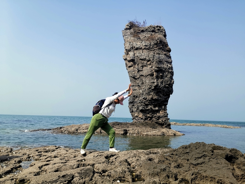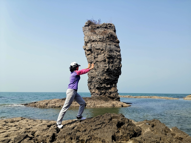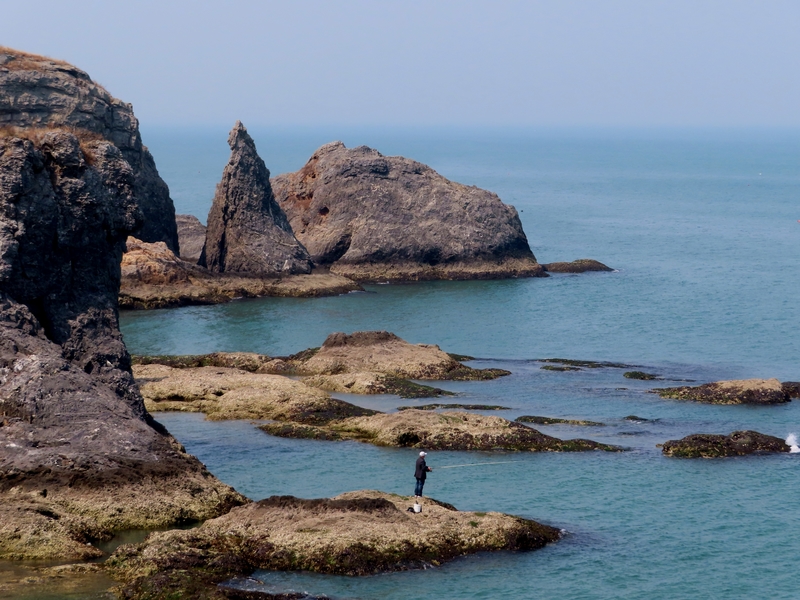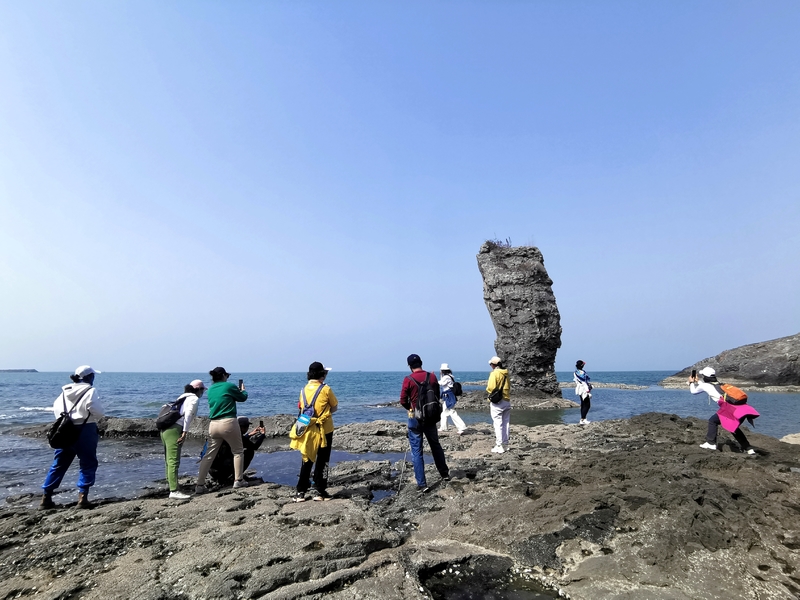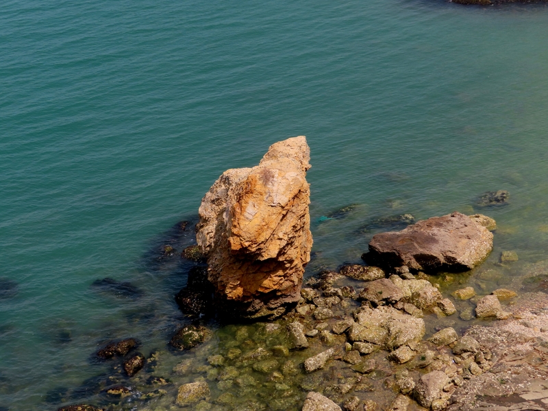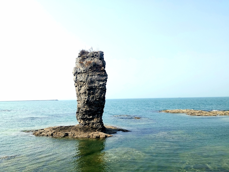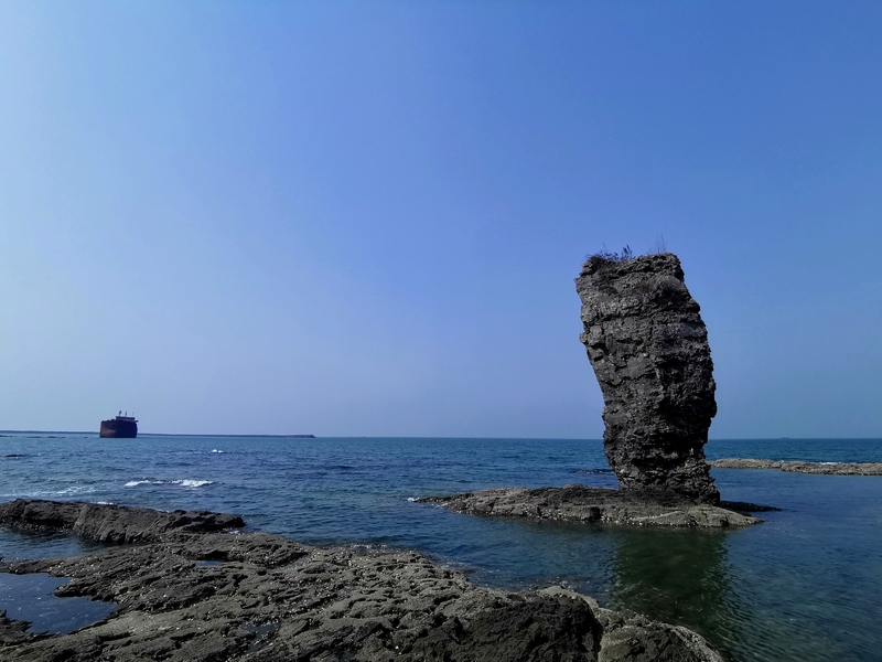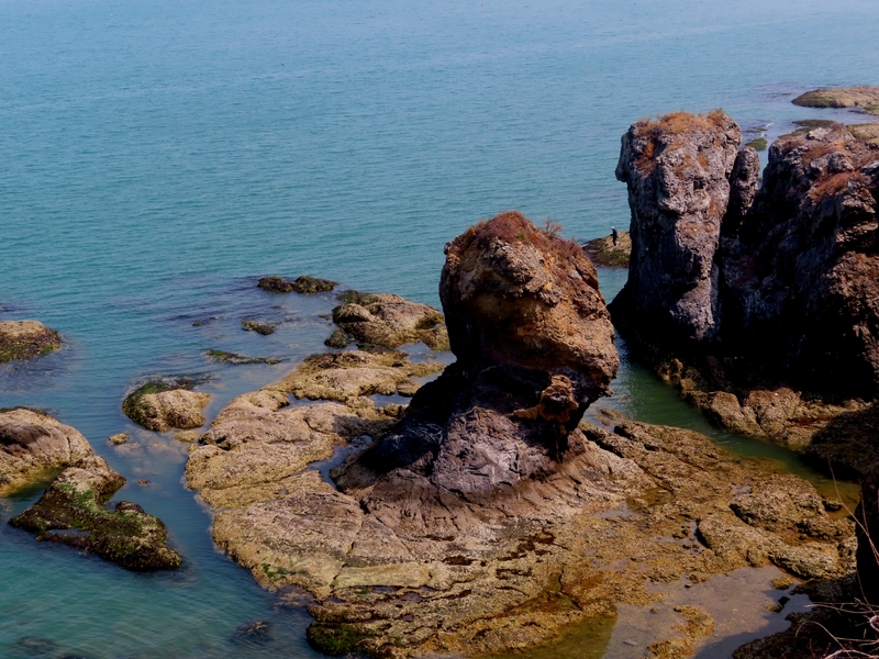 可以在崖上俯瞰翠绿的海水,也可以下到海滩近距离欣赏奇形怪状的海蚀岩石。有的如大雕蓄势待发,有的似锥体尖峰,傲然耸立的定海神针孤独的在大海里坚守着自己的威严,不群而介立。