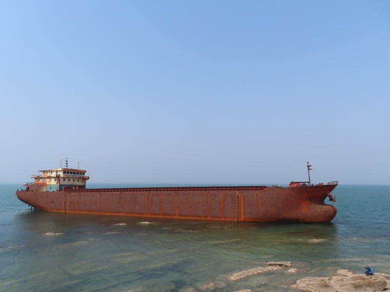 一条搁浅的轮船,俨然造就了大海中一道意外的取景元素。没有人能领会它被遗弃后的伤心和寂寞。终日的浪遏飞舟,暴风骤雨,总会有“曲终人散”之时,寻一安身之处,平静到老,也是幸事!
