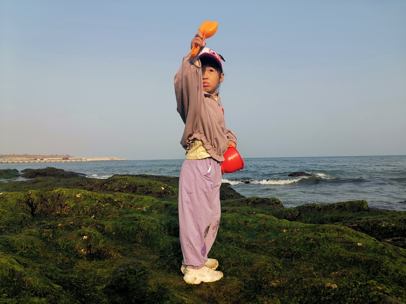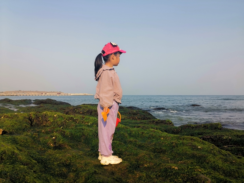 而在这个地方还有两个很多人不知的观赏点,一是象鼻子山,只有在蛤蟆礁的西边岬角远望对面的海岸才可以看到,地点比较隐蔽,非常规线路可以得见。今天虽然晴天,但透明度不够,潦草拍了一张打卡照片。