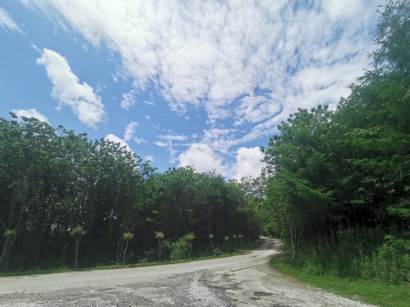 还有一道风景,说是风景,其实是人工工程烂尾留下的若干个巨型水泥管。前段时间我来问过在此散步的人,说是筑路墩子架桥所用,改道后废弃,当时还真是信了。后来又看网上有人说这是废弃的摄影基地,有些离谱,这些水泥建筑不是普通摄影基地能够消化的投资,另外,这场景也和摄影基地不咋搭呢。