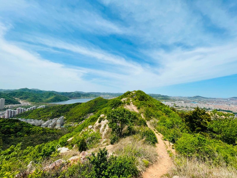 在大连城区居住,只要想爬山,总会有山满足你的愿望。稍微远一点有砬子山、大黑山、小黑山等。近郊有西郊森林公园和金龙寺的广阔山地,市内中心地带也是山头林立。炮台山、气象山、景山、捷山,滨海路的六小山峰、白云山、莲花山、西尖山等等,任何等级的爬山穿越线路,都可以让你足不出市就可尽情发挥。石门山也是市内山体公园的其中一座。大连的西部大通道在石门山穿山畅联南北,鱼贯出入的隧道上方就是石门山秀美的山脊,但上山走过的人比例很小。我们今天穿越队伍三十多人,走过的也不超过四人。所以,初次在这穿行,分外有种新奇感。不只是新奇,此时的石门山让队友们有意外的惊喜。想不到城中心竟然还有可以称为峡谷的地方,虽然就是一条很小的山谷,称之为“石门山峡谷”虽言过其实,也是说明户外爬山人对此的一种偏爱吧!爱,是因为每年这个季节的山谷里,荷青花开满谷底小路两边,一丛丛,一簇簇,可爱清新,自由灿烂, 花朵弱小不张扬,生命力顽强,在山谷里仿佛一盏盏亮黄的小灯,葱绿之中,黄色的鲜花耀眼醒目,令人陶醉。走过峡谷,穿过依山居小区再上山。远处西山湖豁然出现在眼前。路在树林里向前延伸,越往高处,那湖面越发壮观诱人。近处高高低低的楼舍,每一栋住宅都装着人的生活和梦想。上升一个小坡,到达石门山的山脊路,视线更为通透宽广。你突然会有一种发现。你生活的城并不是平面的、而是有层次、有纵深的。你的日子与生活,是在山与城、天与地交融的。生活,原本可以更丰富,更多彩。有这样一个高度和视野,你其实是找到生活的乐趣。穿过嶙峋的石头,与民航的雷达“大球”合个影,我们完成了9公里的城市中心地带山地穿越。疫情当下,唯有健康的身体才会有能力抵挡病毒的攻击。锻炼身体,保卫自己。【365户外】5月14日大连石门山环绕