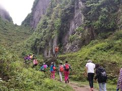 作者:仰望星空今天人员齐备,加司机加领队共16人,开始正式行程的第一天。今天去看地壳最古老的伤痕——剧烈地壳运动所致以绝壁裂缝称奇的武陵山大裂谷。知道我们要游山,今天气温一下子从36℃高温降下来,甚至有一些冷。十二哥总是会安排我们赶在最早进入景区以避开人群,在等索道缆车的时候竟还下起了小雨先介绍一下武陵山大裂谷景区吧,它位于长江上游地区、重庆涪陵区城东南约45公里的武陵山乡境内,以剧烈地壳运动所致的绝壁裂缝称奇。平均海拔1200米,最高处1985米,是国家4A级旅游景区,主要由裂谷、地缝、暗河三部分组成。景区面积约30平方公里,有着95%以上的森林覆盖率,核心观光景点为10公里的喀斯特地貌原生态裂谷,有着“中国第一动感峡谷”美誉。武陵山大裂谷的形状大概是呈三角形态。沿顶端往右下脚斜尖处的水晶湖,路程最远;斜尖处往回到直角的底端,是深谷。整个景区内,山、林、泉、洞、瀑、湖、潭、峡、坑、缝一应