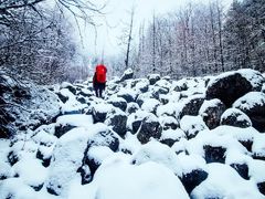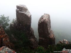 2018年5月17日 雨雾天,大连瓦房店东屏山。大雾中我们走上此山。 东屏山位于太阳办事处榆树房村,距瓦房店市区10公里,距沈大高速公路瓦房店站4公里。东屏山最高峰海拔约340米,山势为南北走向,南北长1.5公里,东屏山风景区的旅游资源丰富,青山、蓝天、褐石、悬崖、林地、草场是东屏山的风光特色。东屏山地貌奇特、岩崖险峻、石柱成林。俯瞰整个东屏山犹如一只朝天仰望的海龟,情趣盎然;远观有如屏障,且处于古复州城的东面,故名东屏山。一车三十人多数都去了挖野菜,几个摄影爱好者见这样的天气放弃了自己的爱好收起了相机,也加入了挖野菜的队伍,只有我与一位比我大几岁的影友浪哥在寻觅着雾中的美景。以下的照片是当时的真实景象原片 看过许多摄影师对摄影理论的论述文章,不知那个观点是对的。一个号称摄影前辈的非常反对后期制作,我问他会后期吗?会绘画吗?不会。我说你不会后期你反对什么? 其实在当今的中国凡是有手机的,几