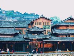 余秋雨先生对这里的评价:“以美丽回答一切,看西江知天下苗寨”。这个美丽的地方便是贵州黔东南的西江千户苗寨。西江的美,美在精致,美在大气。那些木质的吊脚楼依山而建,层层相叠,鳞次栉比,足足盖过了两个山头,气势恢弘。寨前山水环绕,绿树成荫,梯田依山顺势直连云天,白水河穿寨而过,怡静清幽,给西江增添了几分灵动之美,恍若繁华盛世里的一块世外之地。这样一个地方,清晨的村寨还在睡梦之中时,那缭绕的云雾便让整个村寨都似乎置身于云端,如同仙境般美轮美奂。千百年来,一辈又一辈苗人的聚集建设,西江苗寨规模扩大至现在世界上最大的苗寨。夜幕降临,西江的灯景又是一道美丽的风景,俯瞰远眺西江,层叠的路灯星星点点,犹如夜空中的群星闪烁。那山、那人、那精致的吊脚楼犹在,她依然是那朵盛开在苗岭上的奇葩,魅力依旧。初识,我便不曾后悔。烟雨中的苗寨别有一番风味!这张照片是在千户苗寨的望西江客栈的观景台上拍的,要为这次十二哥选的
