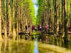 文图:南风窗 跨过山,越过海,2021年的劳动节,由乍暖还寒的东北到夏意已浓的江浙,六天五夜,穿梭在由北至南的高速路上,各色花儿次第开放,园林、古镇交织成一场悠远而绵长的梦。 看365的旅行招募计划,最先吸引我的就是浙江泰州的李中水上森林,但真正身临其境,更是震撼。乘船一路看去,两岸是满眼的翠绿,扎根于水中的池衫、水衫高大茂密,横成排、竖成列;河道里各种鸟儿和水面上划行的野鸭相鸣相和,一片生机盎然的景象。 水上森林的深处,木栈道曲折质朴,休憩小亭精巧雅致,站在水中央,向上看阳光自树丫间微泄,在木道上勾画出缕缕霞光,向远看河道暗绿幽深,扶栏而眺,入目皆是雀跃。 再回首,曾经驻足过的链桥上游人三两,水中倒影依稀,我观她,她看景,不知是谁装饰了谁的风景。 扬州的个园是中国名园,以春夏秋冬四季假山奇石闻名于世,5月2日下午兴致勃勃奔奇