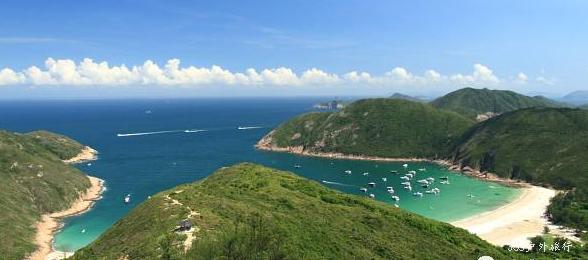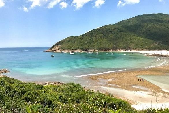 头上,蓝天白云,脚下,细沙清水,这样动人的美景就在香港,就在西贡东郊野公园 ——浪茄湾。